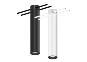 Choix de finition Black ou White pour le corps du luminaire et les câbles caténaires, permettant une intégration esthétique harmonieuse dans chaque projet architectural.